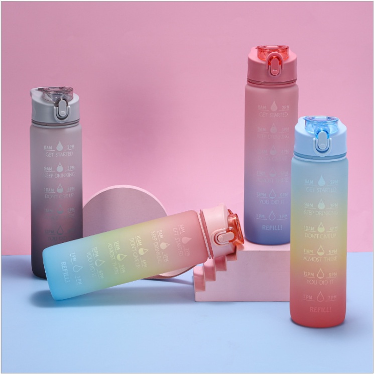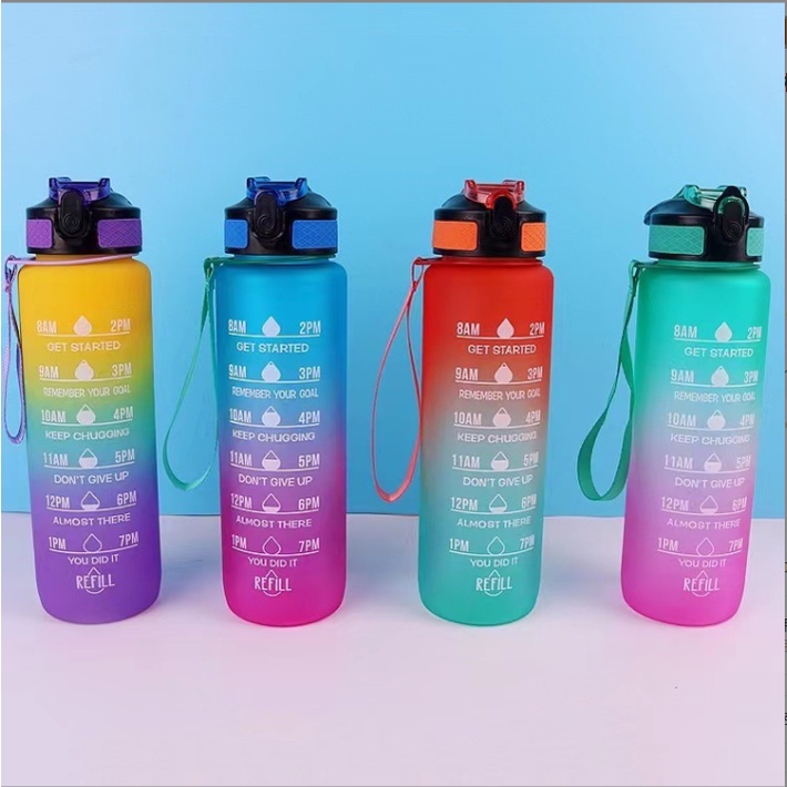 Giới thiệu Bình Nước 1L Dễ Thương Có Vạch Báo Giờ Uống Nước, Bình Đựng Nước Có Ống Hút Phối Màu 3D