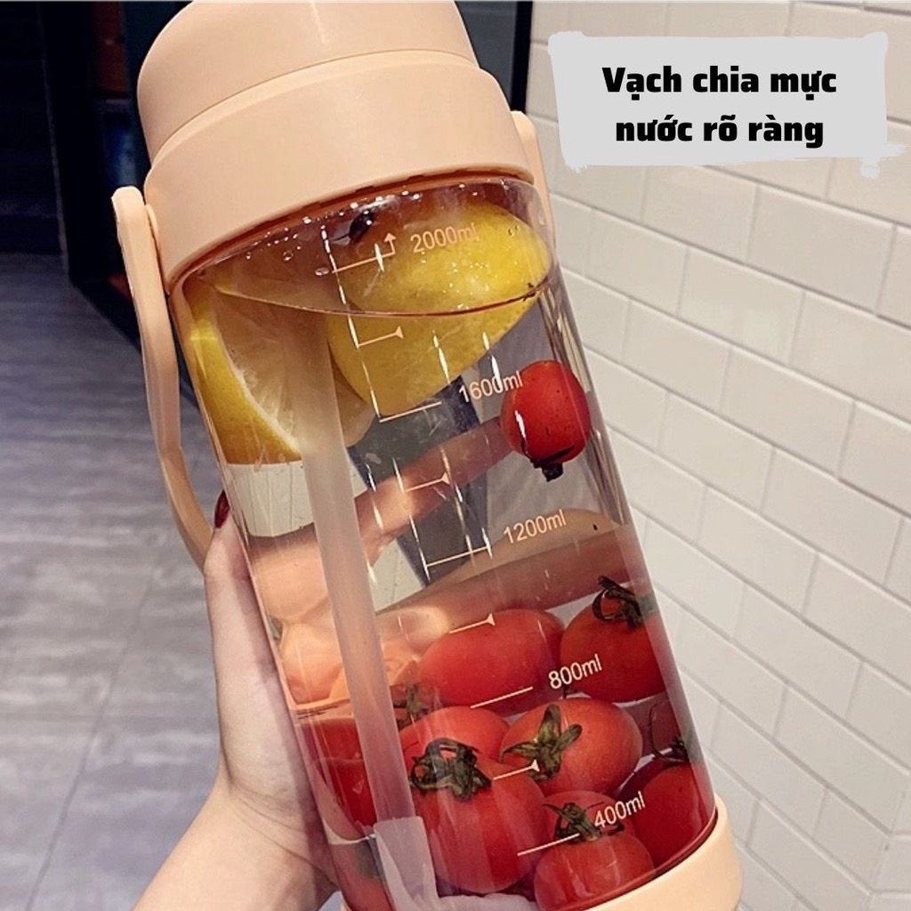 Bình nước 2 lít, bình đựng nước 2 lít chịu nhiệt tốt có ống hút tháo rời kiểu dáng dễ thương---------------------------------------------------------------------------