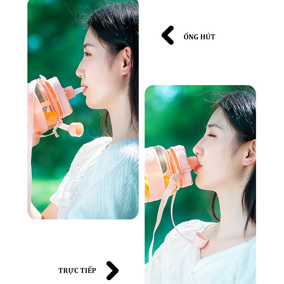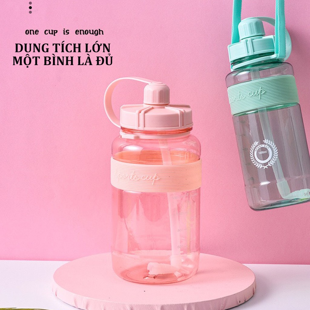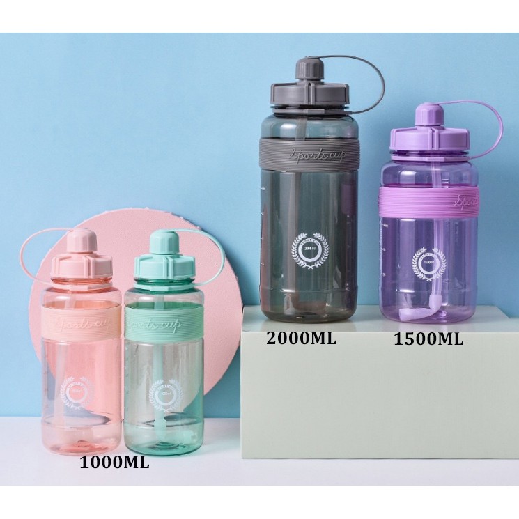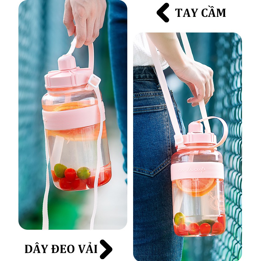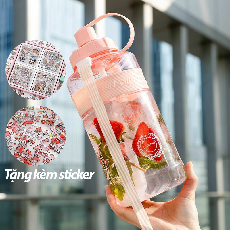 Bình nước, bình đựng nước thể thao cute nhựa 2 lít có ống hút dây đeo tiện lợi Sport Cup