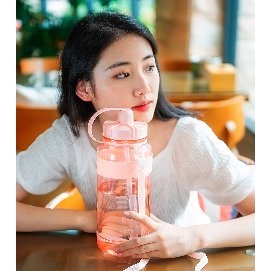Nhà cửa & Đời sống > Bộ đồ bàn ăn > Bình nước & phụ kiện || Bình nước, bình đựng nước thể thao cute nhựa 2 lít có ống hút dây đeo tiện lợi Sport CupCòn hàng