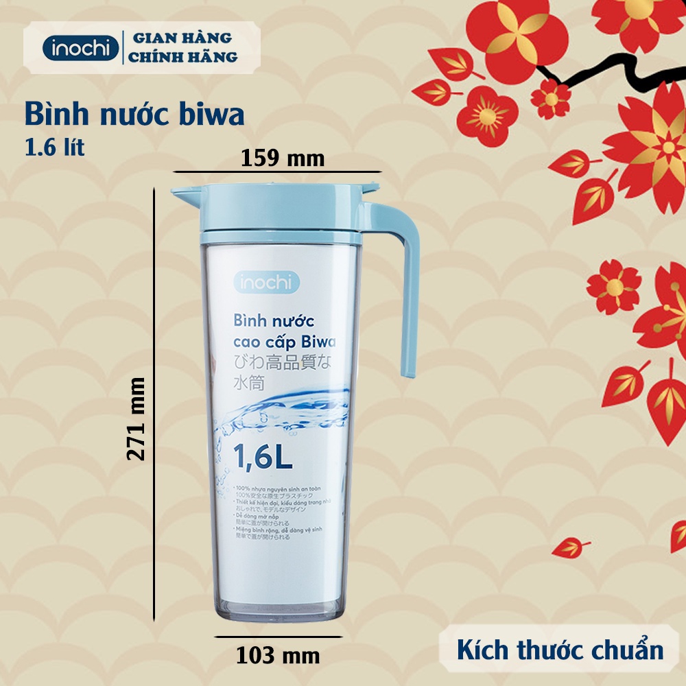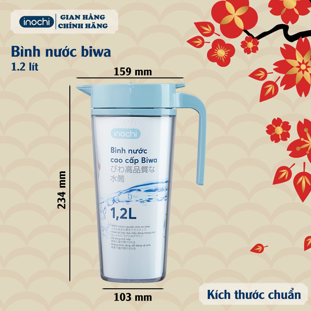 Bình Nước Bình Đựng Nước Uống Cao Cấp Biwa Inochi 1,2l-1.6l An Toàn Cho Sức Khoẻ Với Khả Năng Kháng Khuẩn