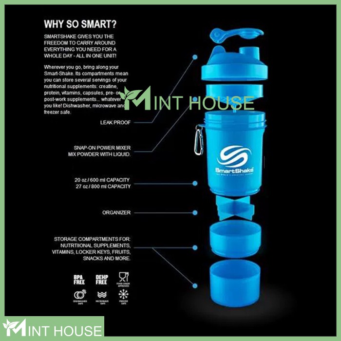 Bình nước bình lắc smart shake 3 ngăn tiện dụng