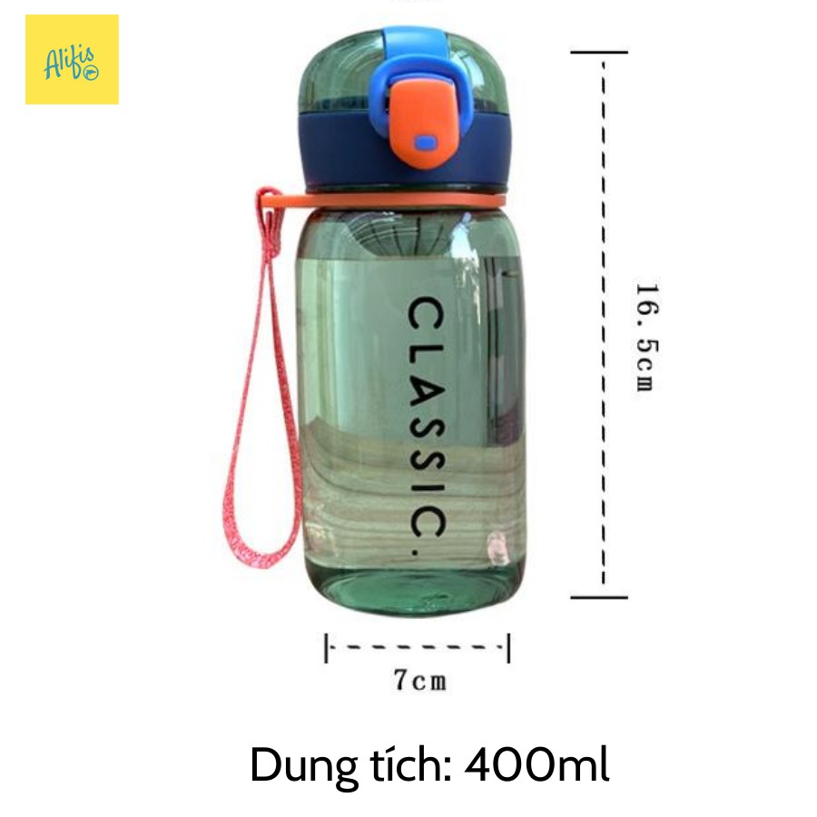 THÔNG TIN SẢN PHẨM- Sản phẩm: Bình nước, bình nước Classic 400ml có dây đeo 4 màu xinh xắn
