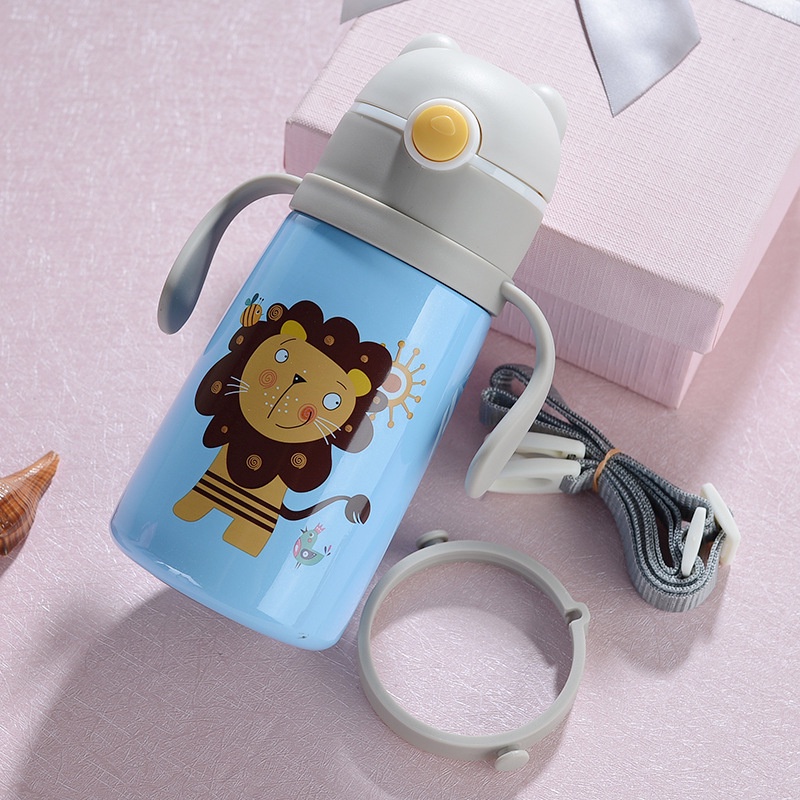 Bình nước cho bé cao cấp S6 khắc tên lõi inox 304 giữ nhiệt tốt và an toàn có dây quai đeo tiện lợi mang đi học đi chơi