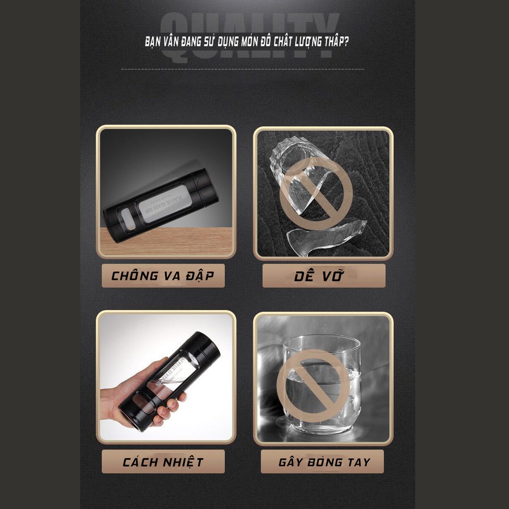 * Sản phẩm thiết kế bằng thủy tinh 1 lớp 1 lớp nhựa cách nhiệt 360ml
