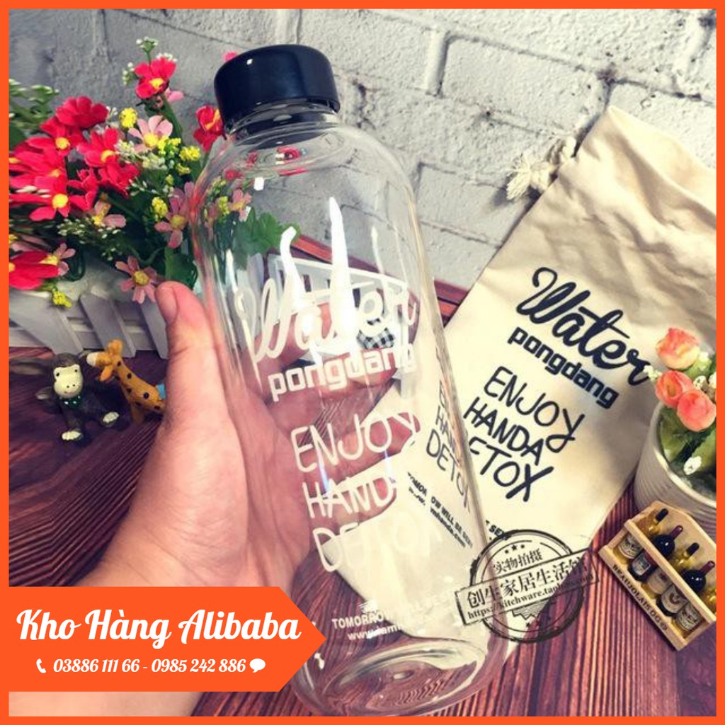 Bình Nước Detox đẹp " Water Pongdang" 1000 ml (Màu Trong Suốt ) - Kèm 1 Túi Vải