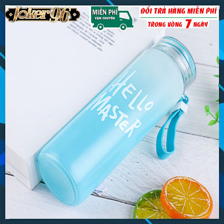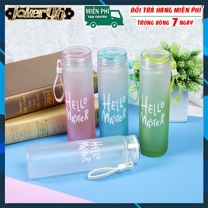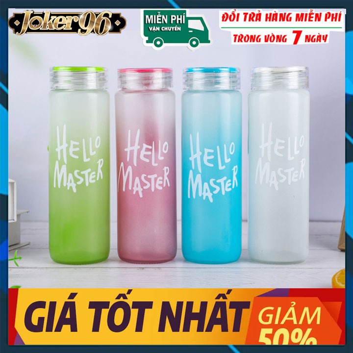 Bình nước Hello Master in nhám mờ chai thuỷ tinh hello master chai nước dễ thương 500ml