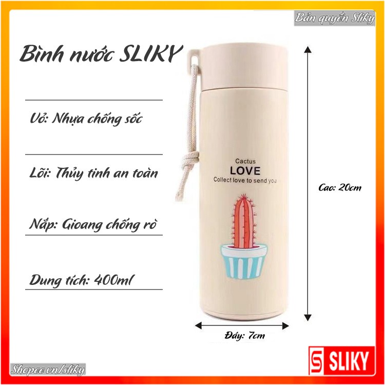 Nhà cửa & Đời sống > Bộ đồ bàn ăn > Bình nước & phụ kiện || Bình nước in hình xương rồng 450ml lõi thủy tinh bọc vỏ nhựa lúa mạch có dây sách (GIAO MẪU NGẪU NHIÊN)Còn hàng