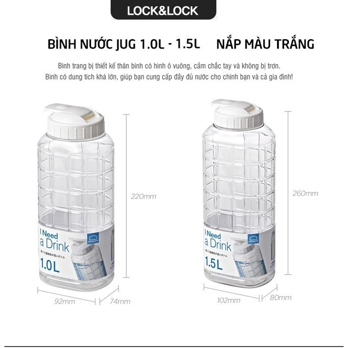 Giới thiệu sản phẩm Bình nước Jug Lock&Lock 1.0L - Nắp màu trắng - HAP810THÔNG SỐ SẢN PHẨM
