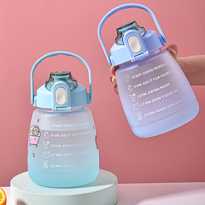 Nhà cửa & Đời sống > Dụng cụ nhà bếp > Dụng cụ pha trà, cà phê || Bình nước nhắc nhở 1300ml Rabit's House, bình nước có quai xách, hình dán sticker dễ thương, cute.Còn hàng