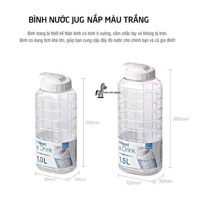 Bình nước Lock&Lock 1.0L và 1.5L - Nắp màu trắng- Chất liệu: nhựa PET