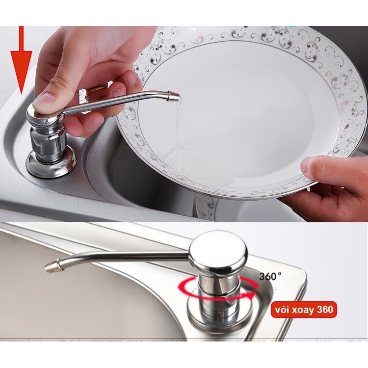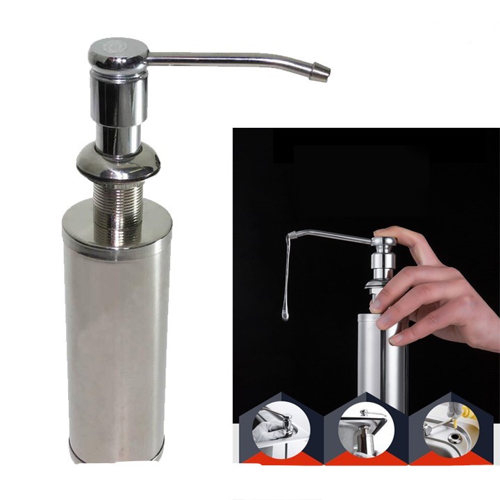 Bình xà bông âm thành chậu, cố định ở chậu, khi hết nước rửa chén ta chỉ việc rút đầu trên và thêm nước rửa chén, còn phần dưới vẫn âm thành chậu