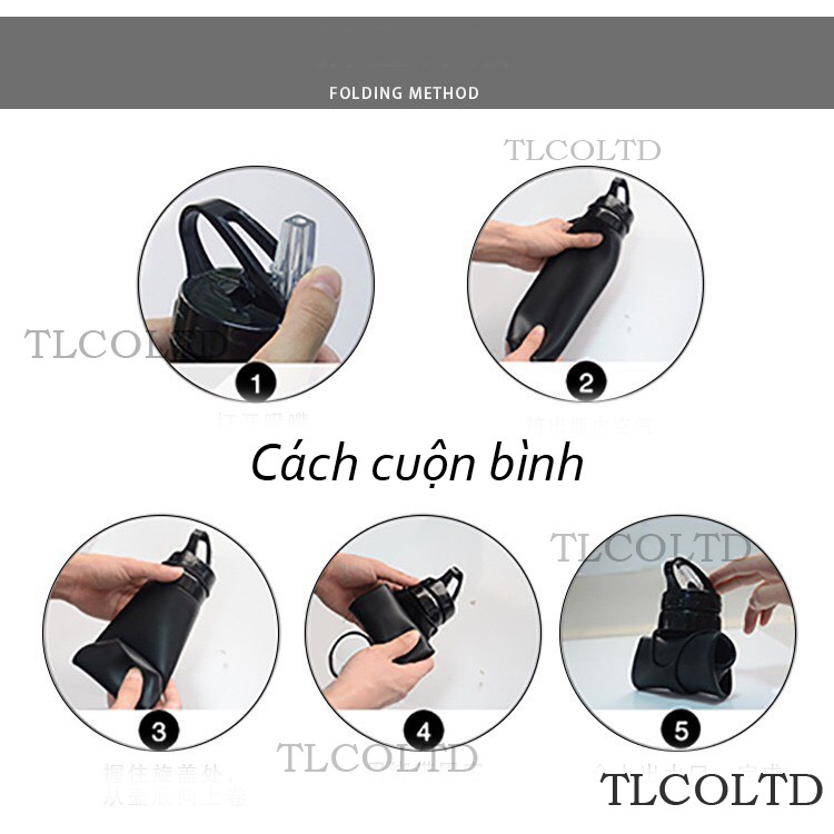 Thiết kế sản phẩm: Bật ổng hút ở miệng bình. Quai treo hoặc đeo tay. Sau khi sử dụng có thể cuộn gọn lại bỏ túi. Cực kì tiện dụng cho du lịch, thể thao, sử dụng hằng ngày.