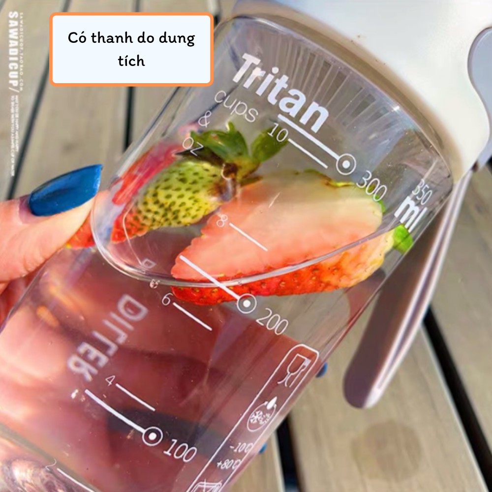 - Bình nước được làm từ chất liệu Tritan chiết xuất tinh khiết từ Copolyester và không chứa BPA (BPA free)
