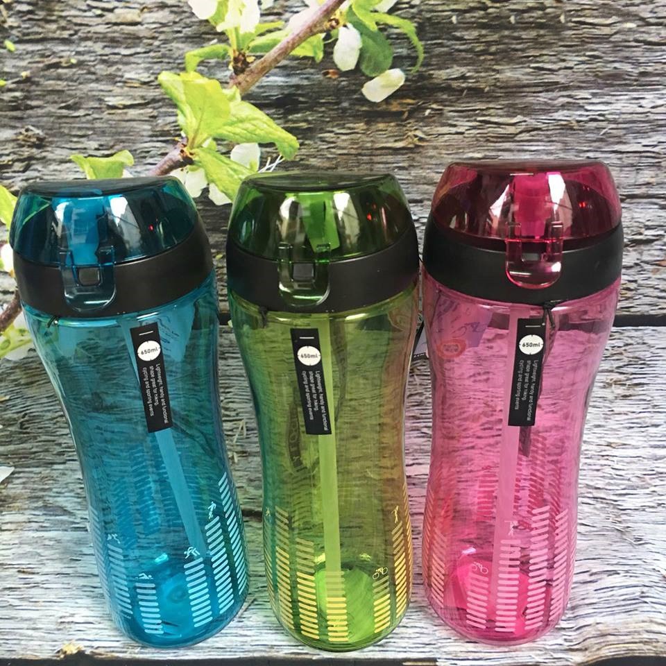 Bình nước thể thao với thiết kế eo thon thuận tiện cầm nắm, có ống hút