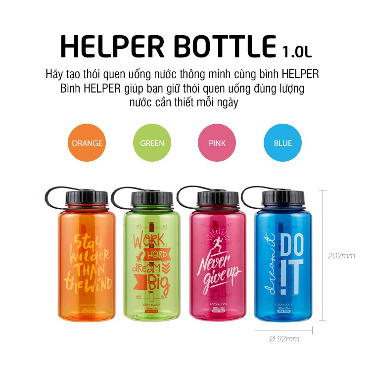 Bình nước thể thao Lock&Lock Helper Bottle ABF610 Dung Tích 1L Nhiều Màu--------------------
