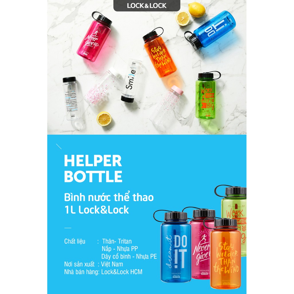 Giới thiệu Bình nước thể thao Lock&Lock Helper Bottle ABF610 Dung Tích 1L Nhiều Màu