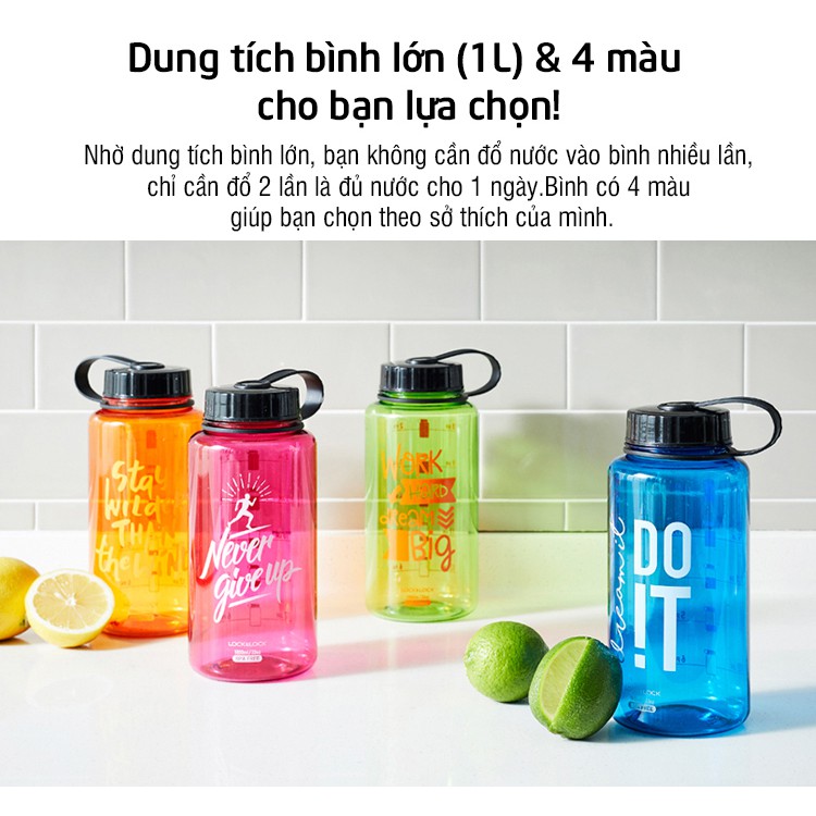 - Bình nước thể thao Lock&Lock nhựa Tritan 1L ABF610 hỗ trợ nhu cầu sử dụng nước hằng ngày, được nhiều gia đình yêu thích và tin dùng.