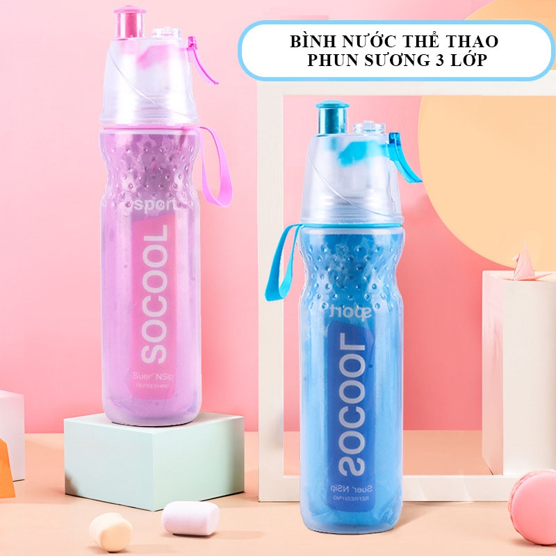 Bình nước thể thao phun sương 3 lớp giữ nhiệt, chất liệu PE an toàn cho sức khoẻ chống vỡ, dung tích 590ml tiện lợi