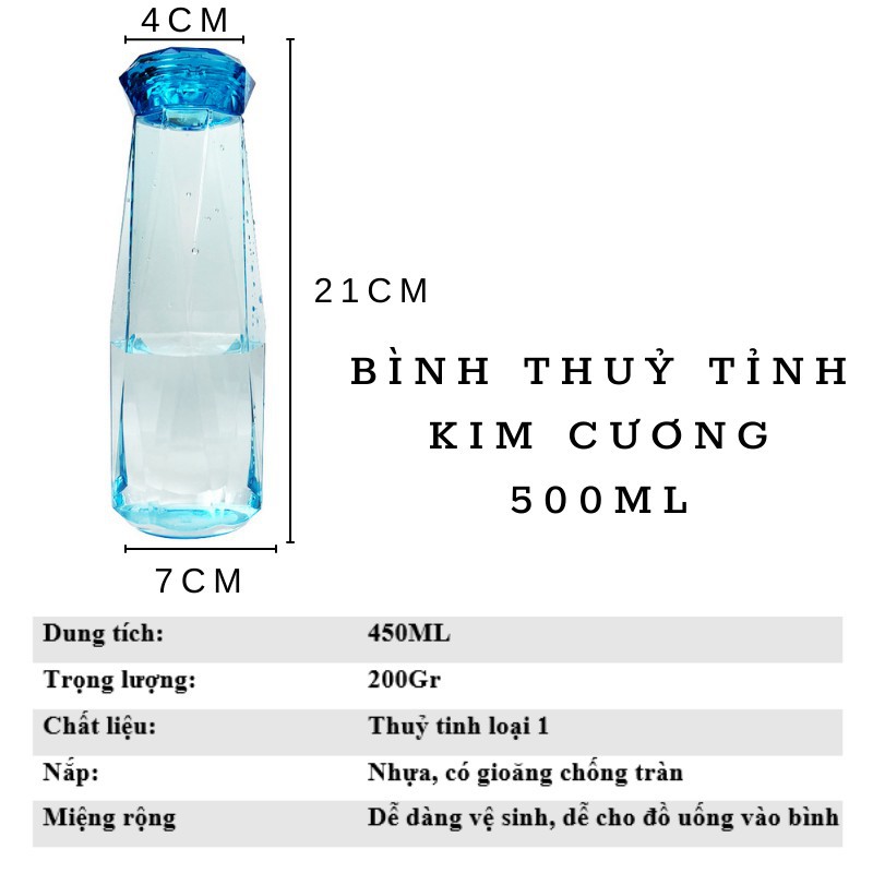 Bình nước thủy tinh bình kim cươngBình Nước Thủy Tinh rất thích hợp với gia đình bạn sử dụng, hoặc quán trà sữa để sử dụng thay thế các loại ly mang lại vẻ đẹp hiện đại cho quán của bạn và cũng là một món quà rất ý nghĩa, sang trọng cho khách hàng của bạn.