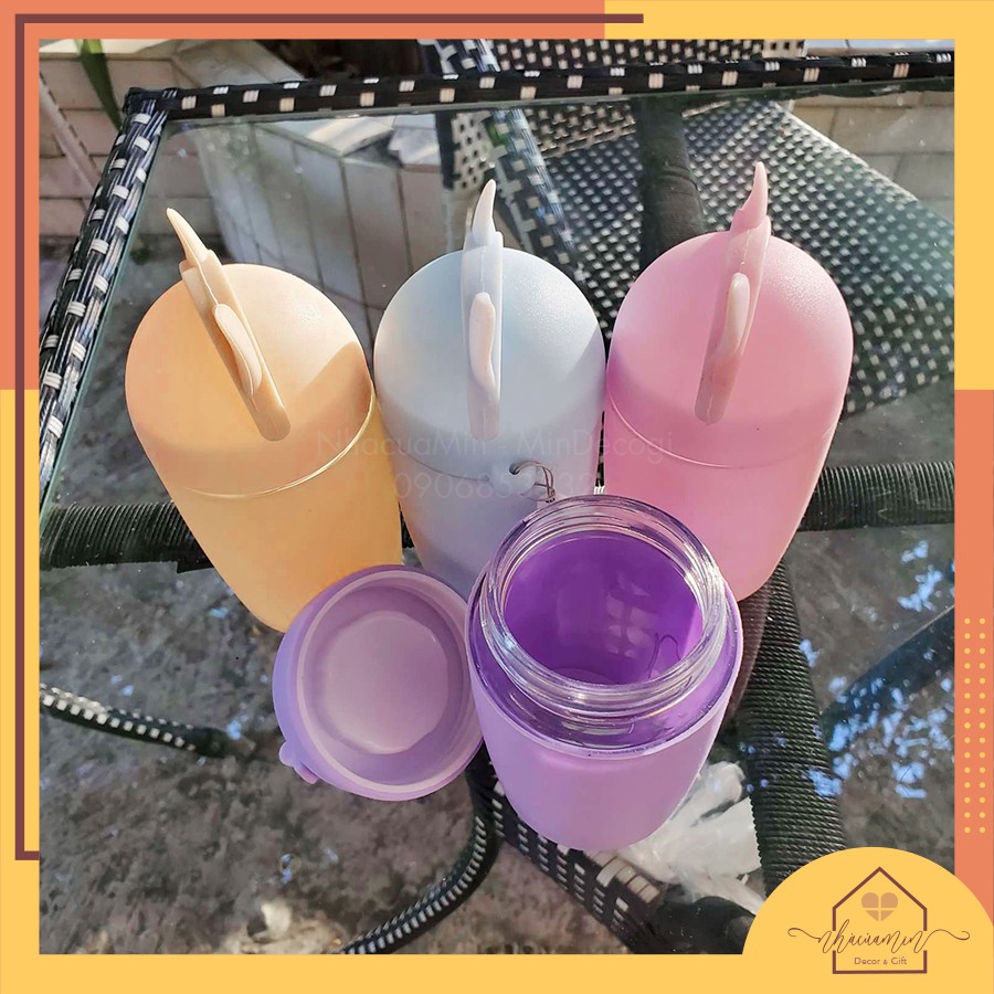 Bình nước thuỷ tinh bọc silicone tai mèo nhỏ nhắn đáng yêu