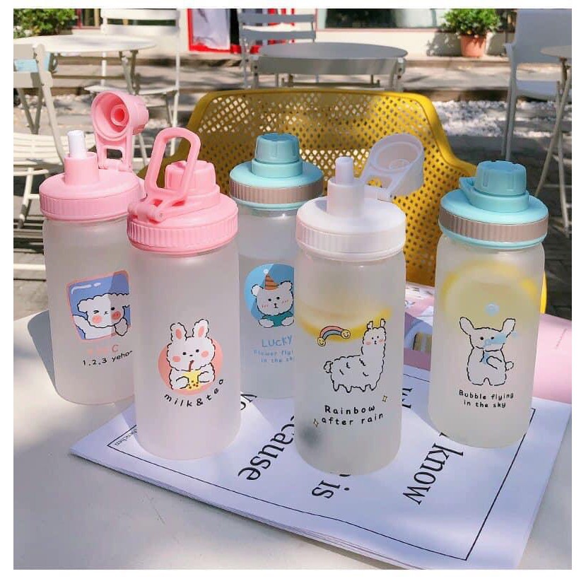 Bình Nước Thủy Tinh Cao Cấp Nhiều Hình Xinh Xắn 500mlbình có sẵn ống hút nha ^^