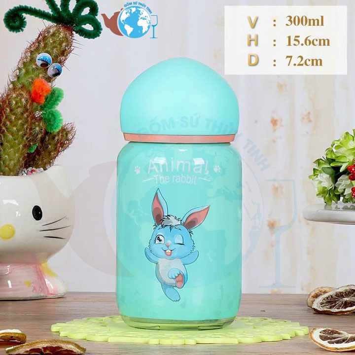BÌnh nước thủy tinh con thỏ dể thương 300ml