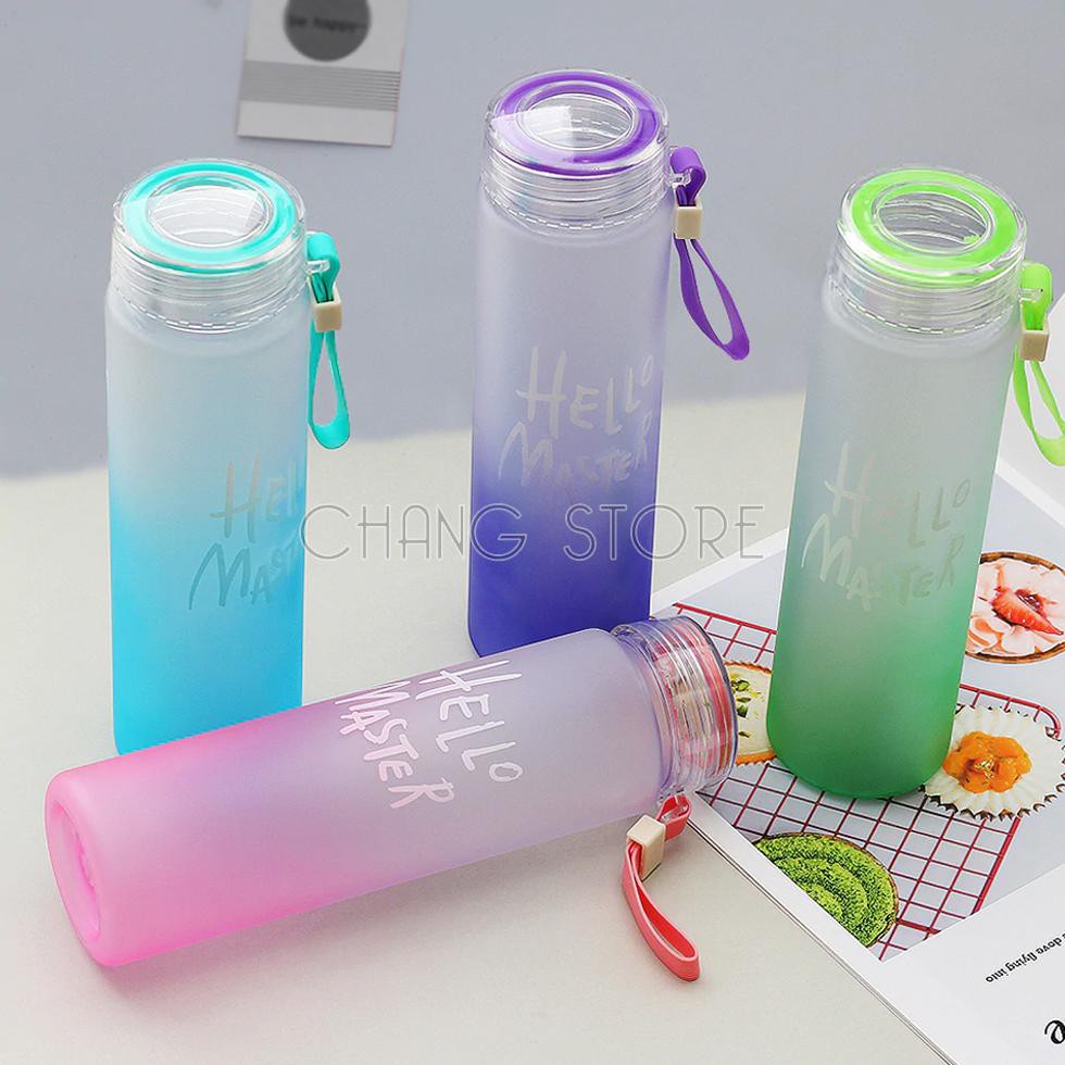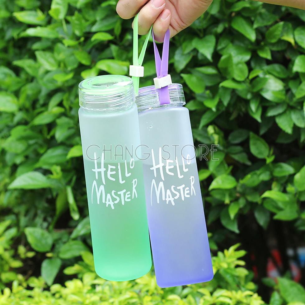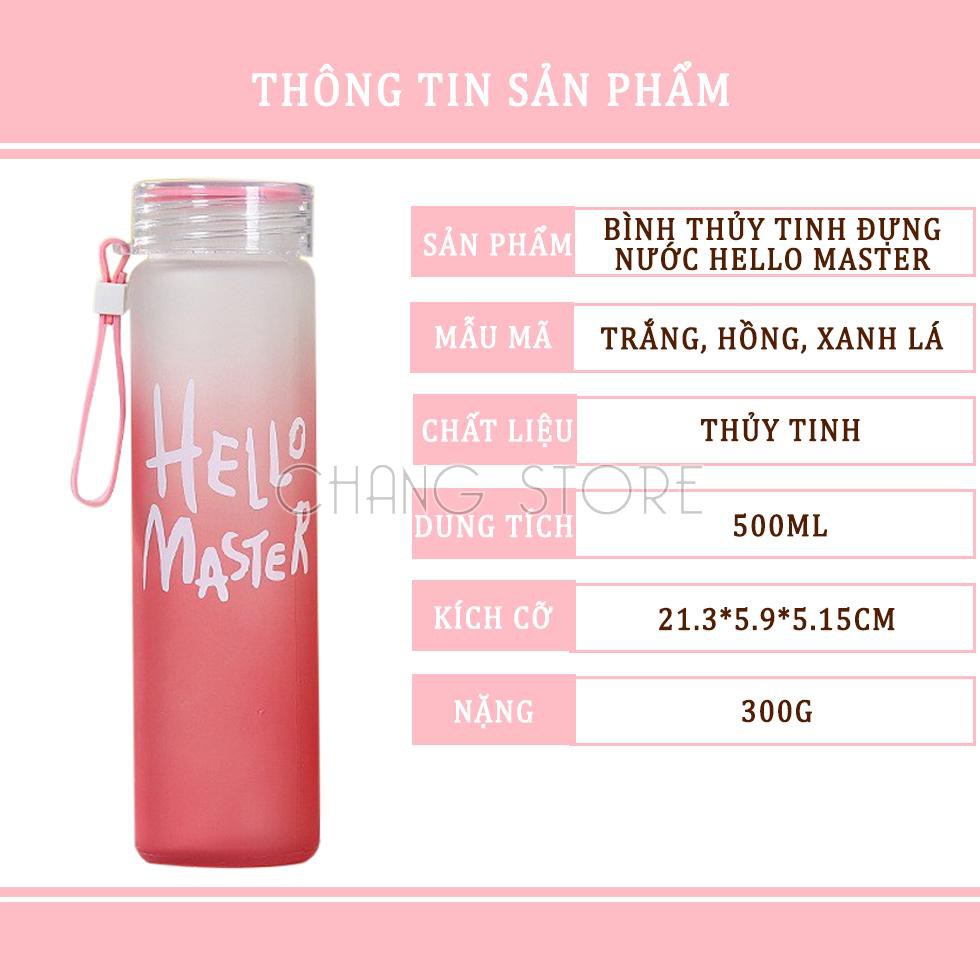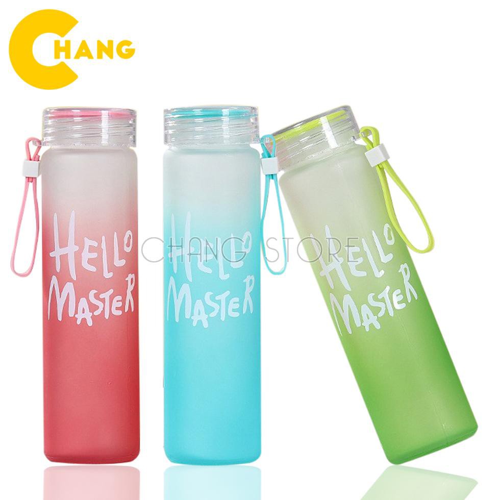 Bình Nước Thủy Tinh Hello Master Chai To 450ml Có Dây Cầm Siêu Hot