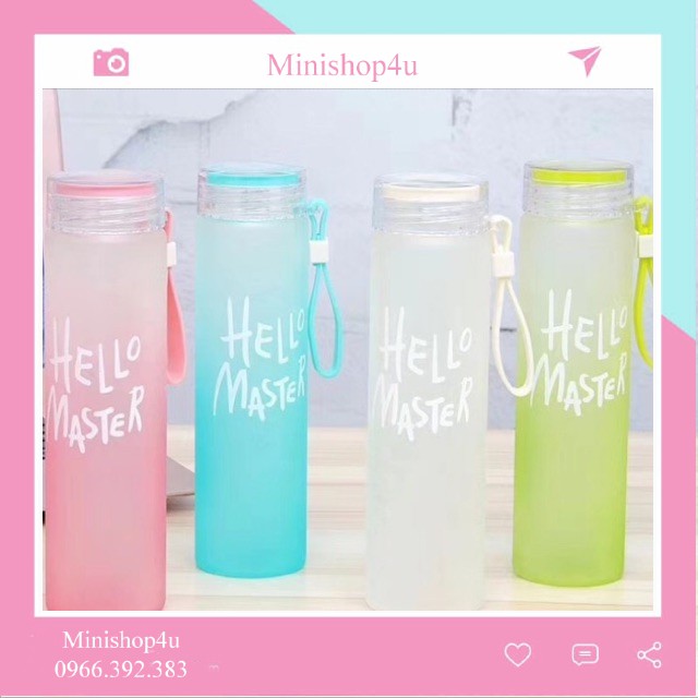 Bình đượng nước thủy tinh HELLO MASTER 480ml- Với thiết kế đơn giản bình thủy tinh có in chữ HELLO MASTER đủ màu và nắp nhựa có gioăng chất liệu cao su bạn hoàn toàn an tâm khi tiếp xúc với thức uống, hoàn toàn không chảy nước khi bạn để nghiên bình