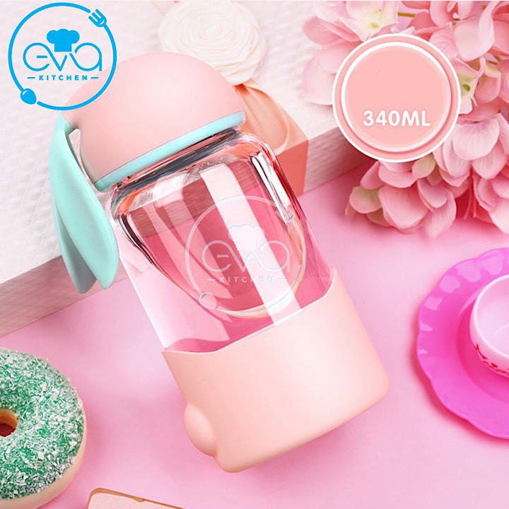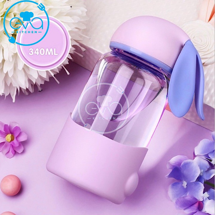 Giới thiệu Bình Nước Thuỷ Tinh Vỏ Bọc Silicon Nắp Thỏ Con Dễ Thương 300 Ml