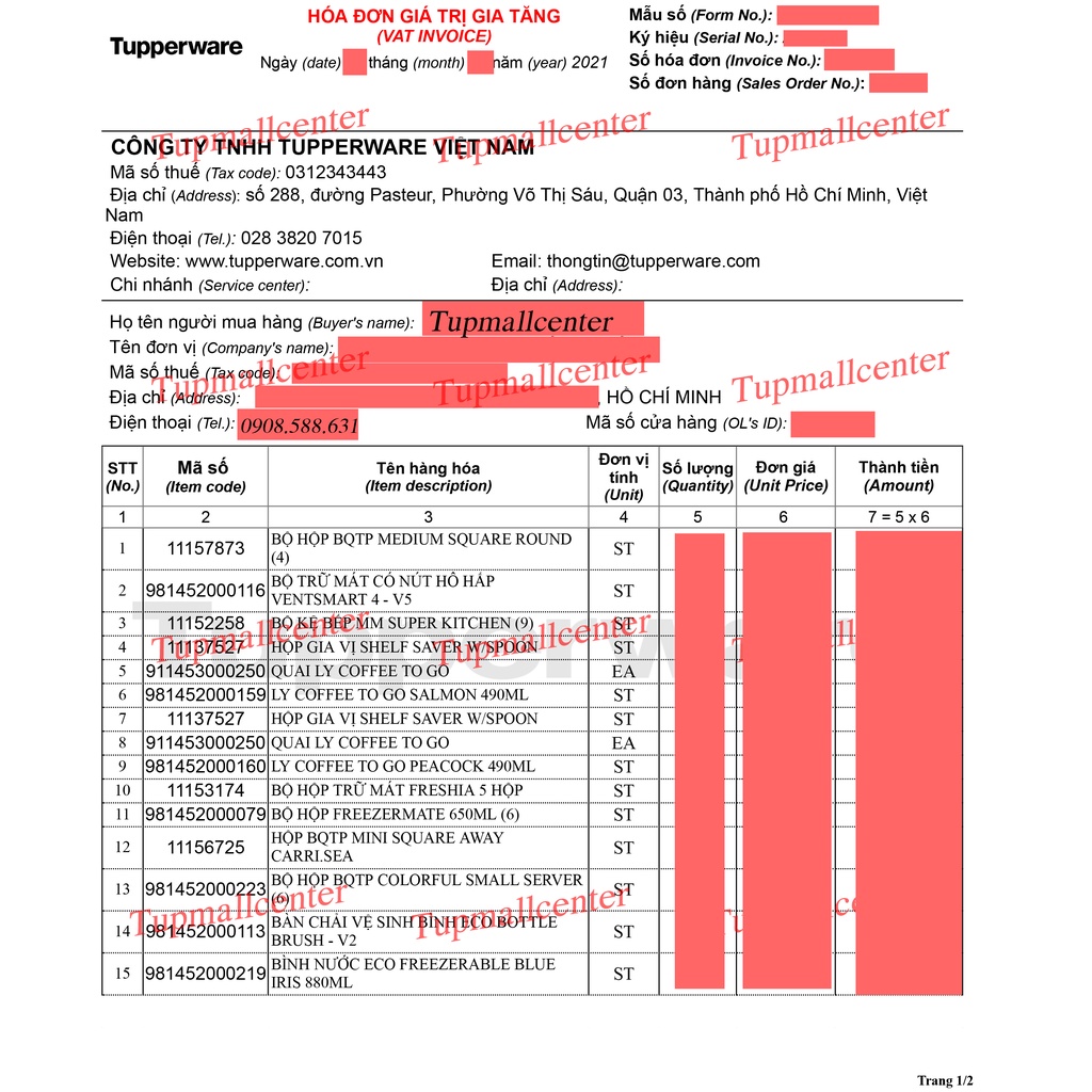 *** Bảo hành trọn vòng đời sản phẩm theo chính sách của Tupperware Việt Nam