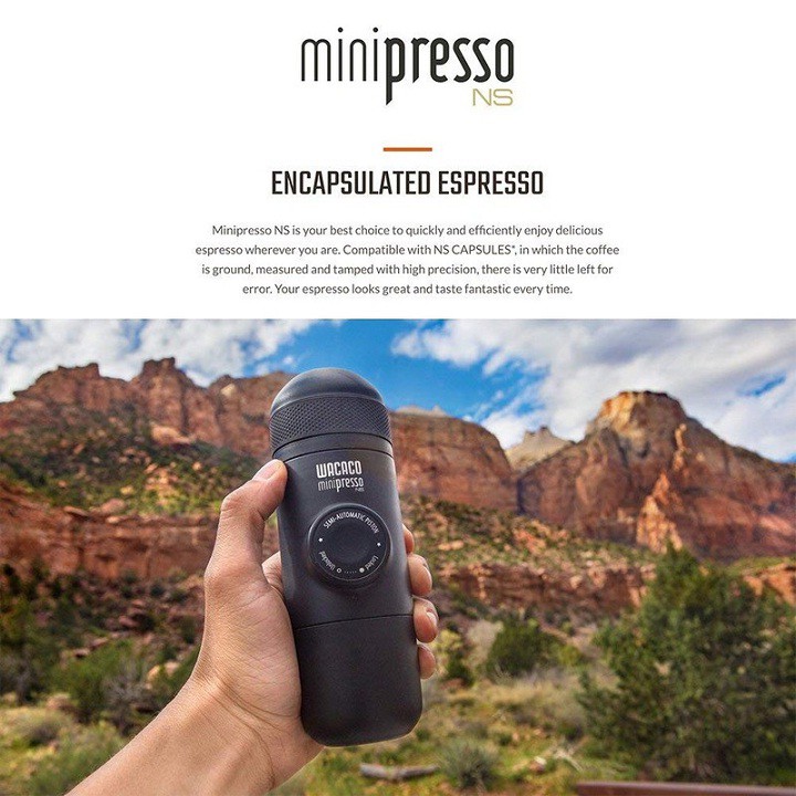 Thưởng thức cà phê Espresso ở bất cứ đâu với máy pha cà phê Wacaco Minipresso NS tương thích với viên nang Nespresso. Một chiếc máy pha Espresso cầm tay nhẹ, nhỏ gọn và cực kỳ tiện lợi khi sử dụng, bỏ qua những thao tác bất tiện để có một shot Espresso ngon, kể cả ở nhà hoặc khi đang di chuyển.