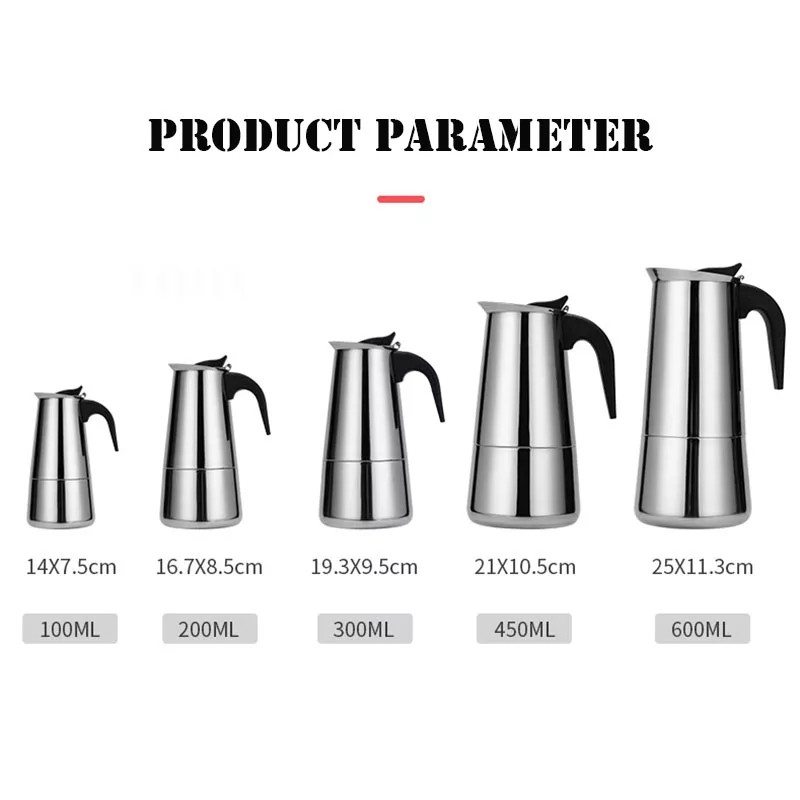 Thiết Bị Điện Gia Dụng > Đồ gia dụng nhà bếp > Máy pha cà phê & Phụ kiện || Bình pha cà phê Moka,Ấm pha cà phê bằng thép không rỉ 4, 9 cốcCòn hàng