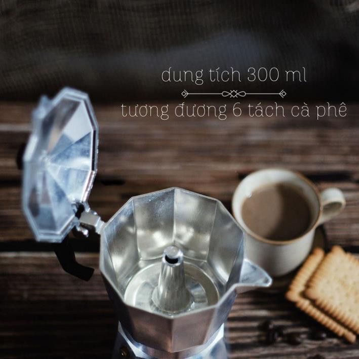 Bình pha cà phê Moka Pot 6 tách 300ml bằng Nhôm cao cấp - Bình pha cà phê kiểu Ý
