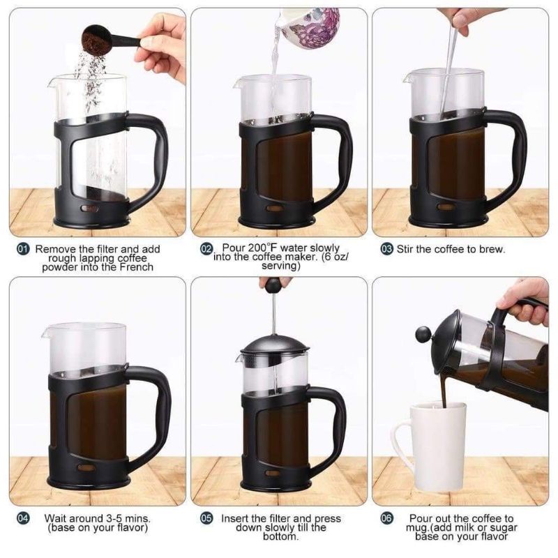 ⭐️ Dung tích 800ml - Thân thủy tinh chịu nhiệt Brosilicate, bộ lọc inox 304, nắp, vỏ ngoài tay cầm nhựa PP