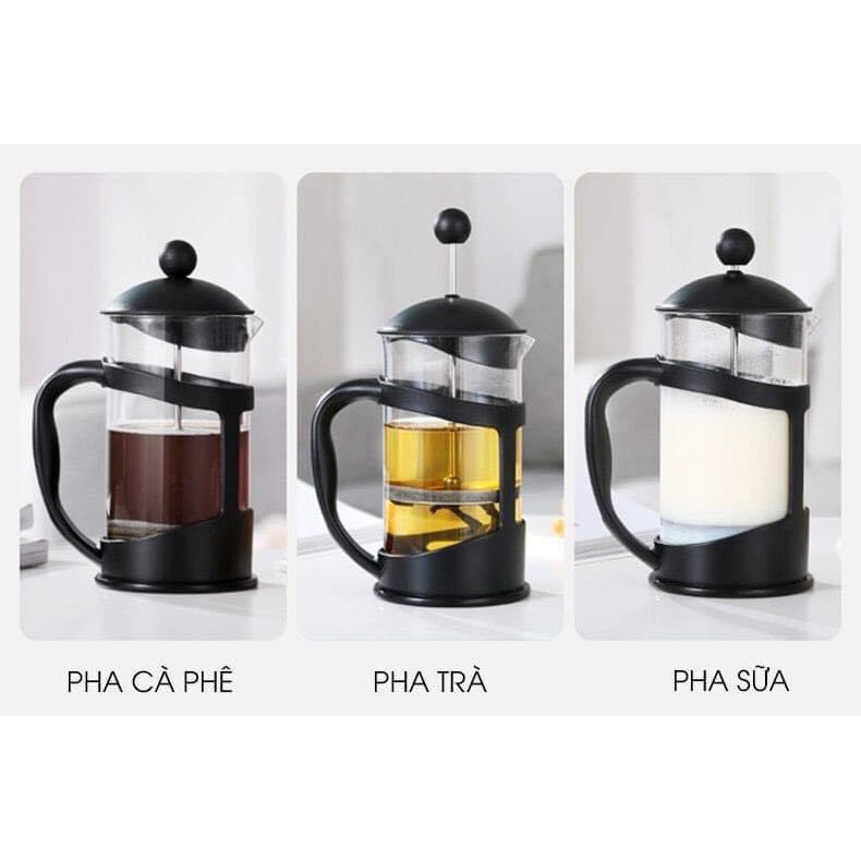 - Cách sử dụng: Nhấc bộ lọc ra, cho trà hoặc cà phê và nước vào khuấy đều trong bình, sau đó cho bộ lọc vào và nén bộ lọc để bã trà và cà phê được nén xuống dưới rồi rót trà/cafe ra chén để thưởng thức.