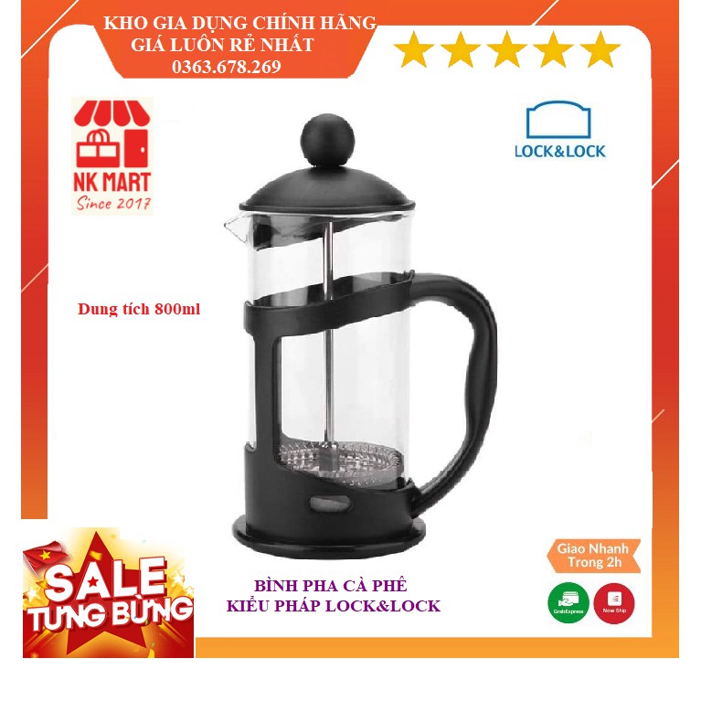 Bình pha cà phê Pháp Lock&Lock French Press bình pha trà dung tích 800ml LLG018- Dung tích 800ml