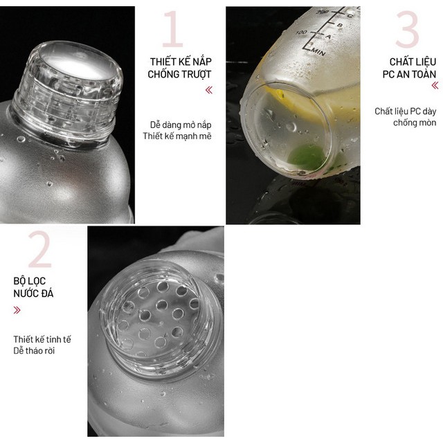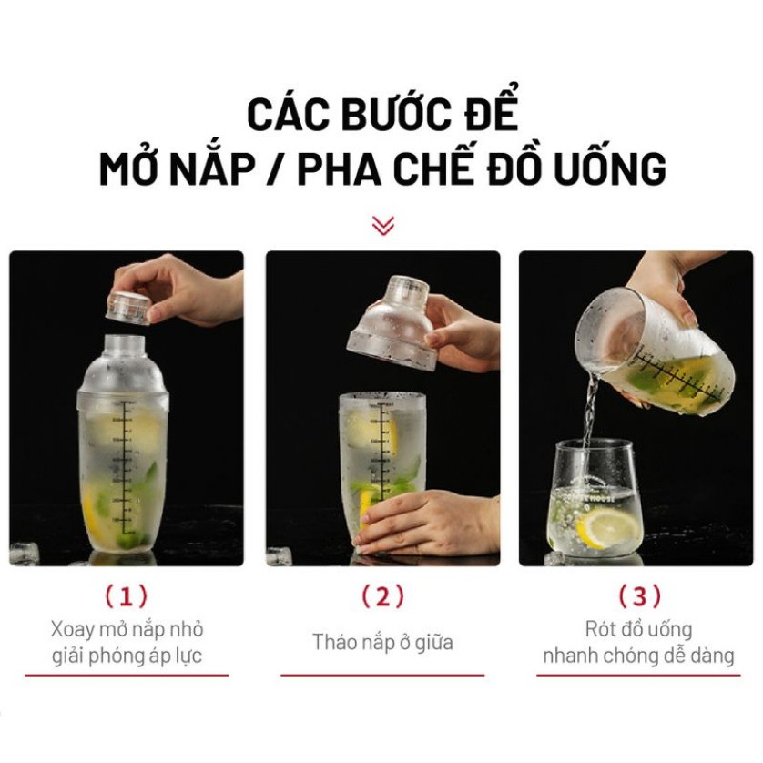 - Bình thích hợp để pha chế rượu, cafe, cocktail, trà sữa một cách chuyên nghiệp.