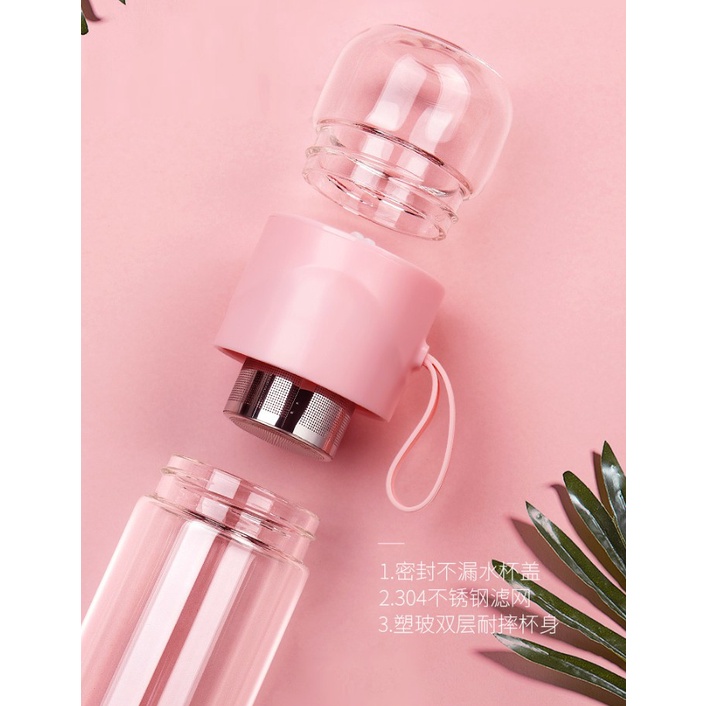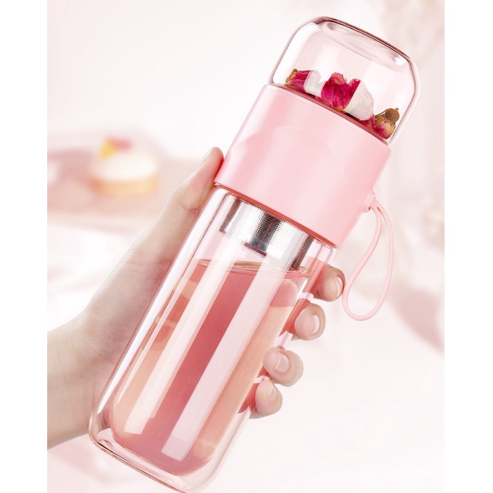 Bình pha trà, ly pha trà thủy tinh có lỗi lọc inox 304 cao cấp 400ml - mẫu mới