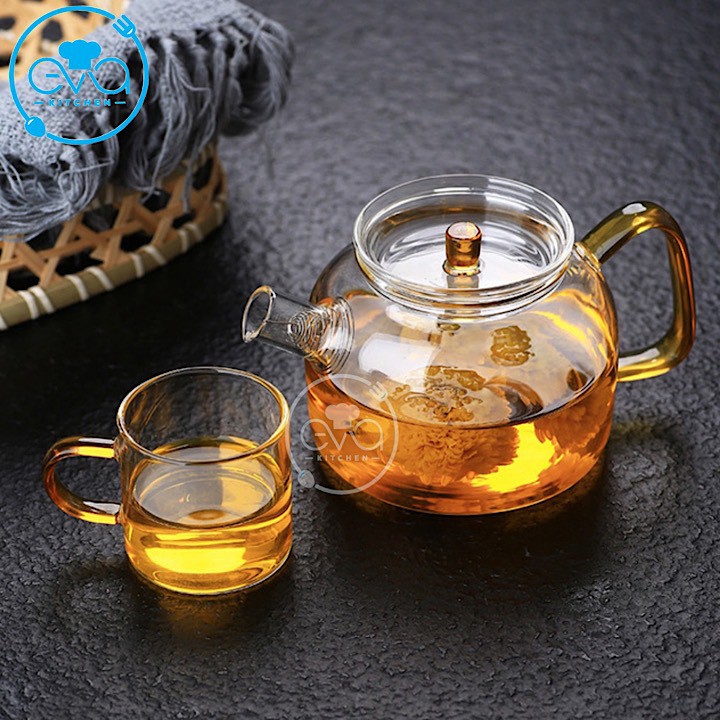 - Bộ ấm tách pha trà thuỷ tinh làm bằng chất liệu thủy tinh, sản xuất theo công nghệ Đài Loan với hệ số borosilicate cao, giúp thủy tinh có khả năng chịu nhiệt cực kỳ tốt.
