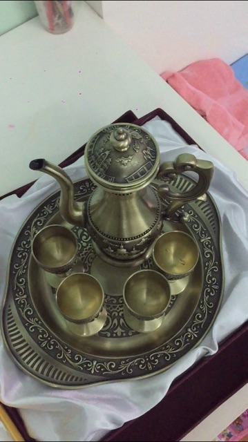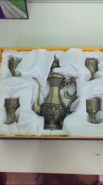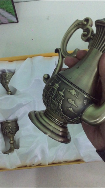 - Bộ bình rượu được làm từ hợp kim đồng- Bộ bình rượu gồm 1 bình, 4 ly và 1 khay