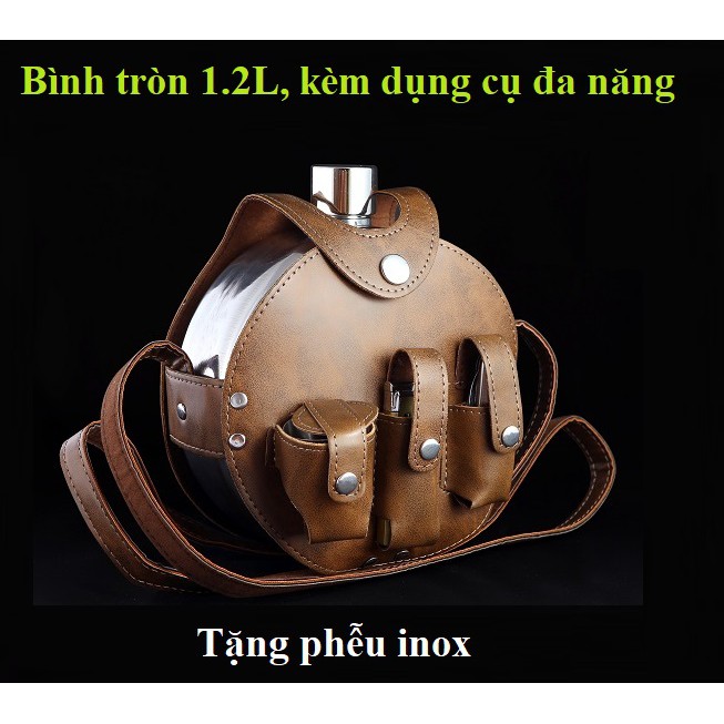Nhà cửa & Đời sống > Dụng cụ nhà bếp > Dụng cụ pha trà, cà phê || Bình rượu inox tròn CCCP 42oz (1.2L), bao da rời đeo vai, kèm đồ đa năng sang trọngCòn hàng