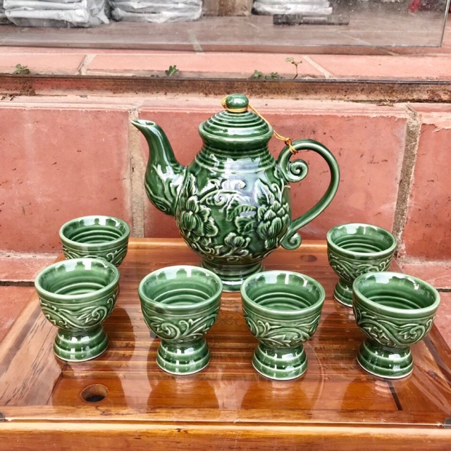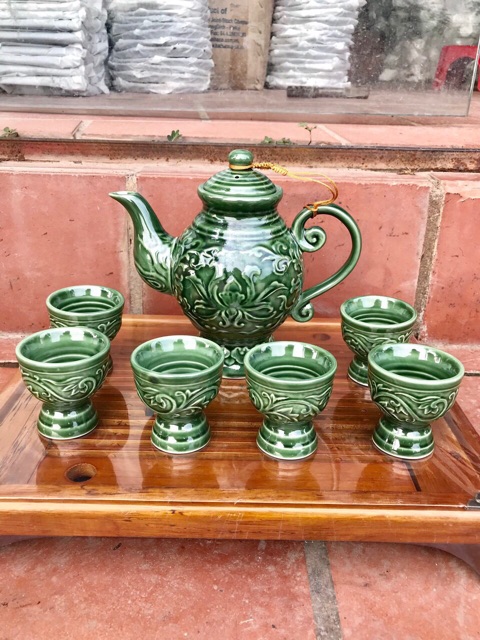 Tên sản phẩm: bộ bình rượu khắc nổi men xanhChất liệu : gốm sứ cao cấp bát tràng