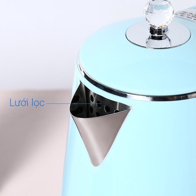 - Bình đun siêu tốc thiết kế đọc đáo, mang hơi hướng cổ điển tô điểm nét sang trọng, nhã nhặn cho không gian.- Dung tích 1.5 lít phục vụ nhu cầu sử dụng nước nóng để nấu mì, pha sữa, cà phê, trà,... cho gia đình 2 - 3 thành viên.