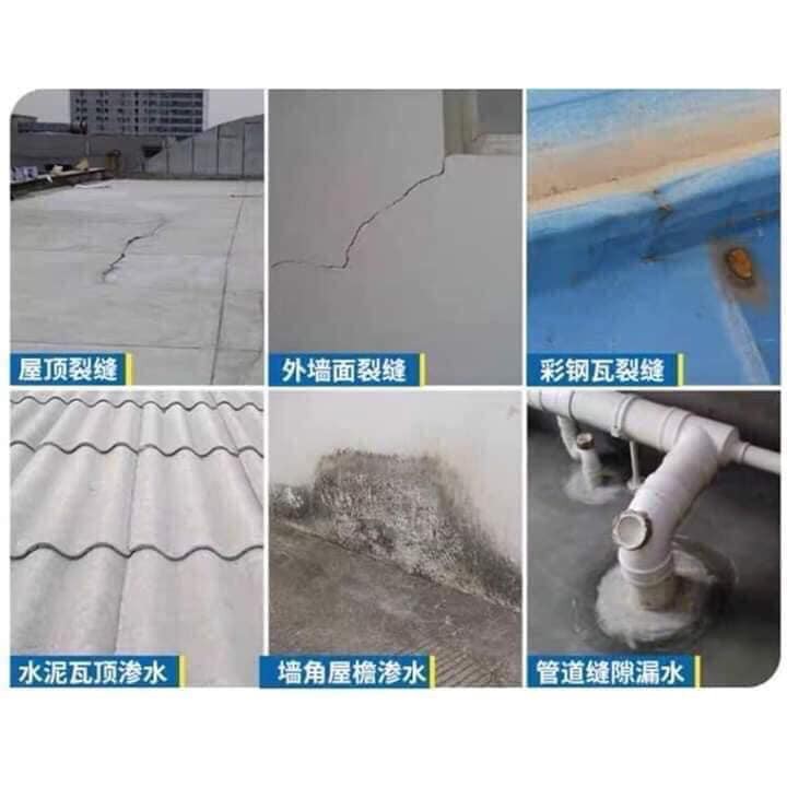✔️ Bịt kín mọi KHE NỨT , chống thấm TƯỜNG, TRẦN, MÁI NHÀ , SÂN THƯỢNG, NHÀ VỆ SINH, MÁNG SÓI, ...✔️ Bám dính trên tất cả các chất liệu: Bê tông, gạch men, đá hoa, sắt, tôn, nhựa,...