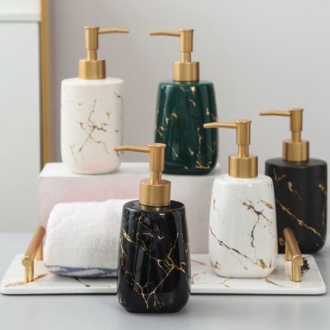 => Không chỉ tiện lợi trong việc lấy dầu gội, sữa tắm, nước rửa tay mà bình sứ men mạ vàng mạ bạc còn tạo điểm nhấn sang trọng cho phòng tắm nhà bạn.
