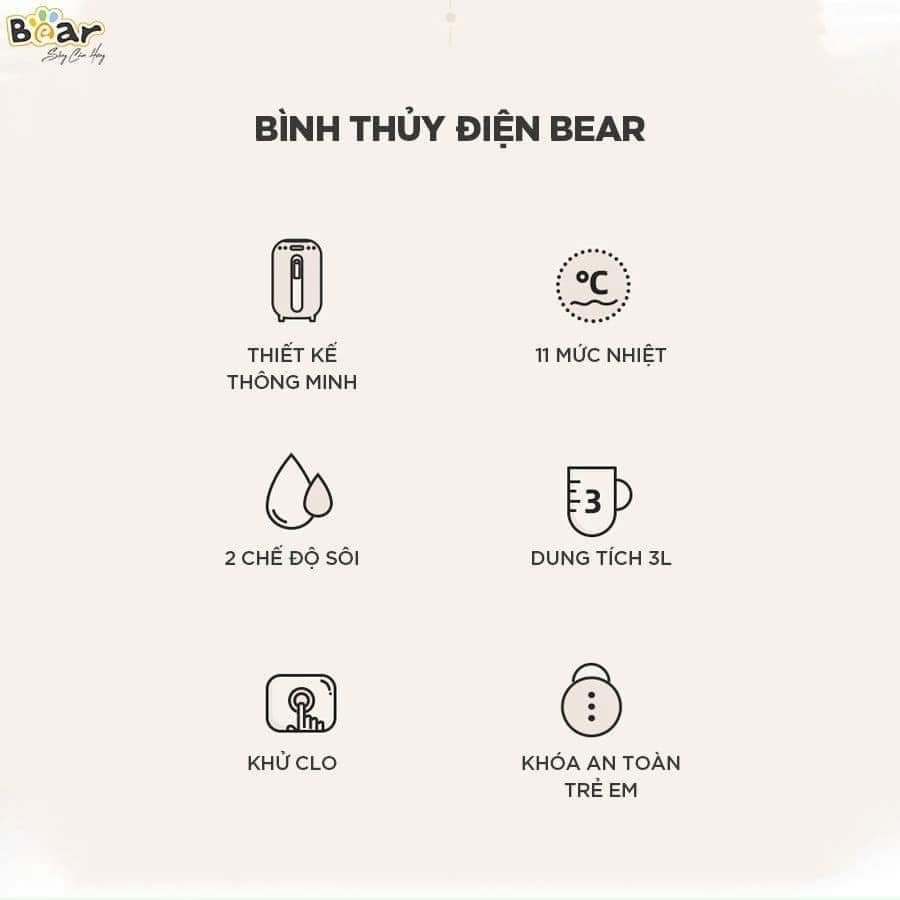 Bình Thủy Điện BEAR KE-B30V1 - Bình Đun Nước Khử Clo, Bình Giữ Nhiệt, Đun Siêu Tốc - BH Chính Hãng 18 Tháng