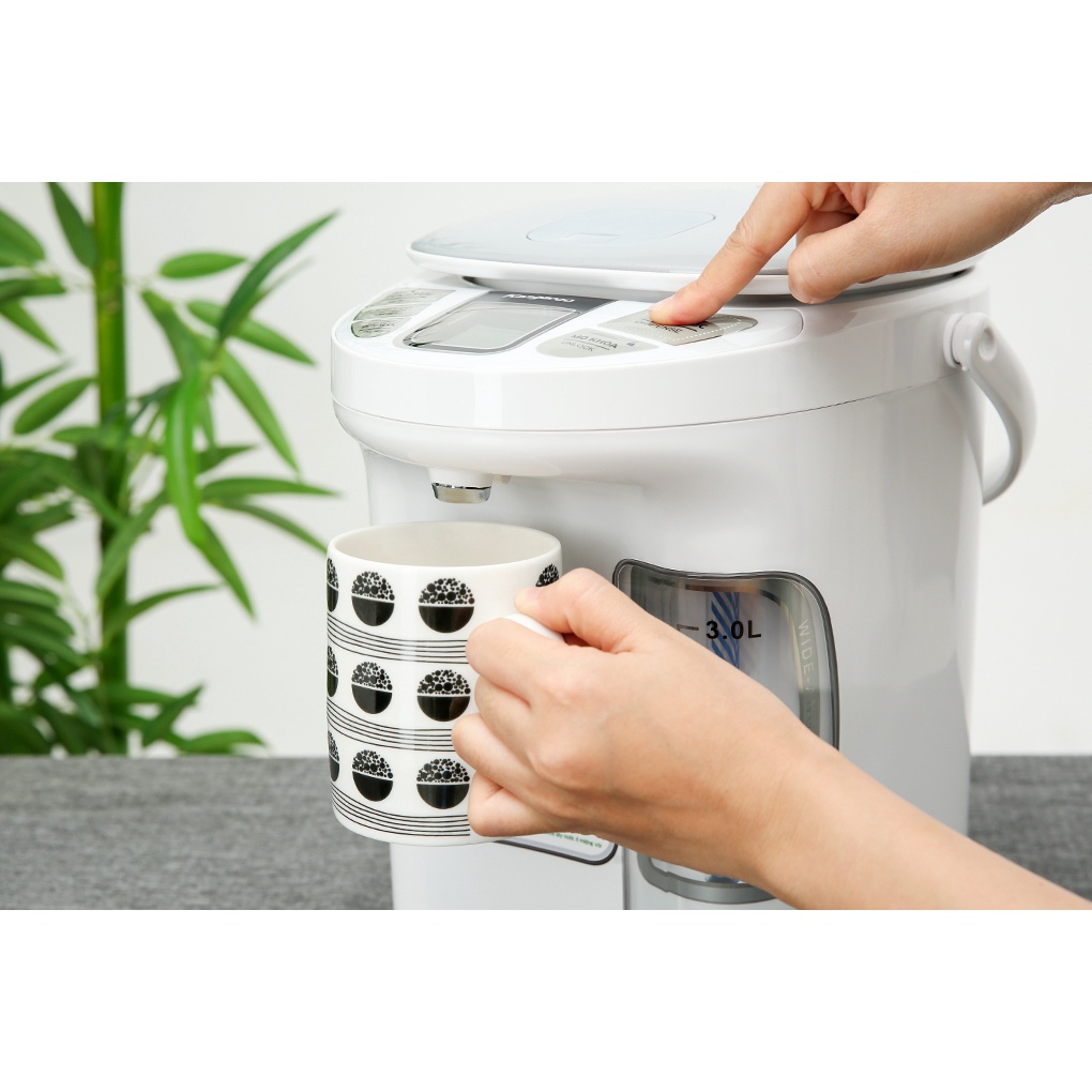 ● Lấy nước dễ dàng với thao tác ấn nút phía trên nắp bình thủy điện hoặc đưa cốc vào dưới vòi