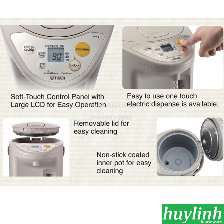 Thông số kỹ thuật Bình thủy điện Tiger PDR-S40W – 4 lít