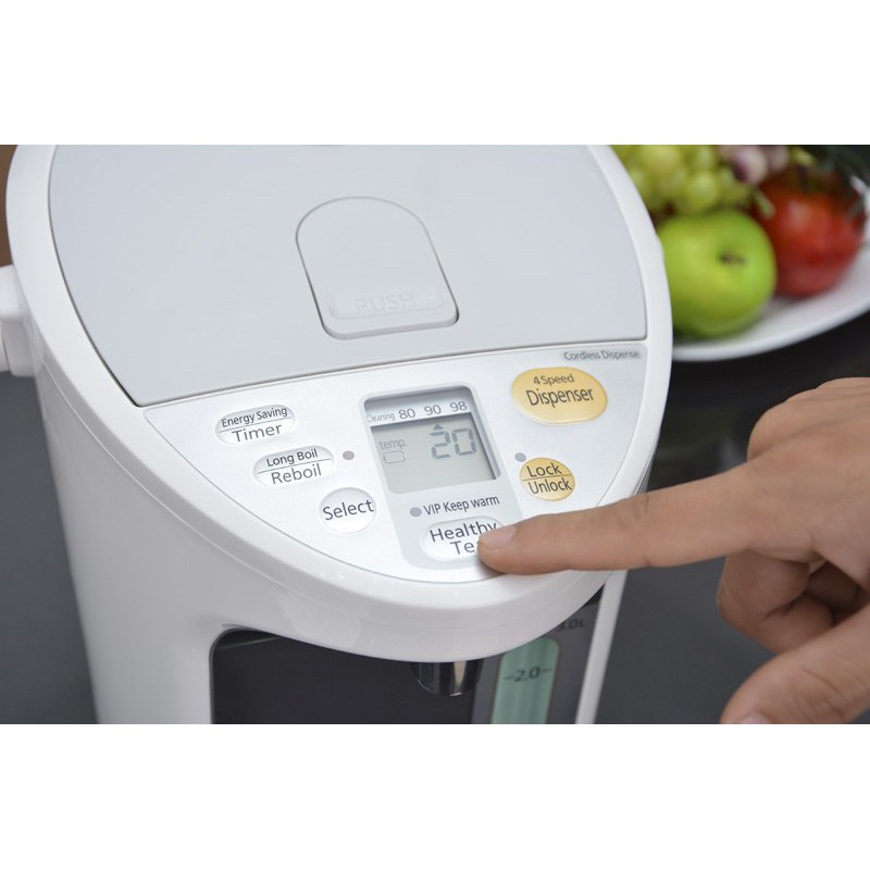 3 mức giữ ấm là 80/90/98oC, lấy nước bằng cách nhấn nút với 4 tốc độ linh hoạt.